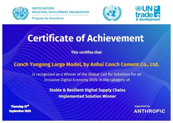 近日,海螺集團下屬“安徽海螺水泥股份有限公司——海螺云工大模型”在聯(lián)合國工業(yè)發(fā)展組織等機構(gòu)于2025年7月發(fā)起...